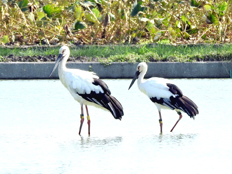 徳島県鳴門市大麻町 から 鳴門市大津町 にて 国の特別天然記念物 コウノトリ が 3羽 飛来しているのを 目撃しましたので お知らせします。