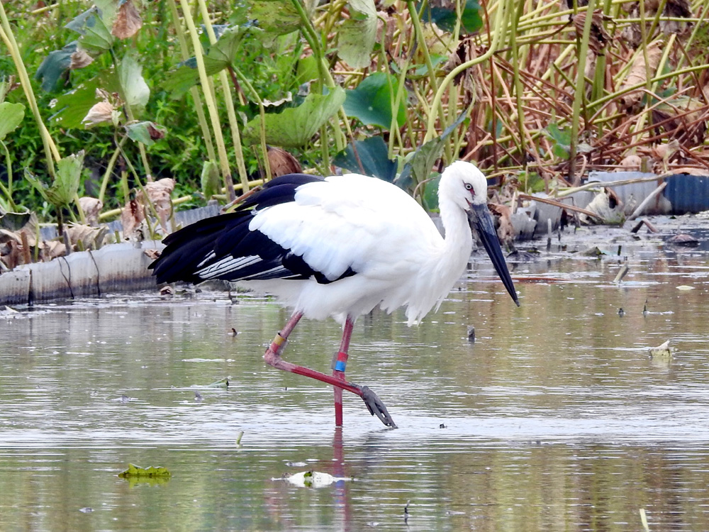 徳島県鳴門市大津町 にて 国の特別天然記念物 コウノトリ が 1羽 飛来しているのを 目撃しましたので お知らせします。